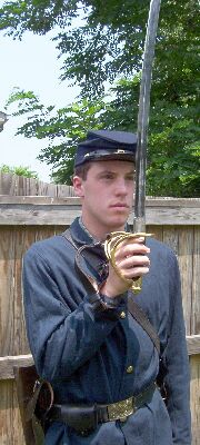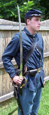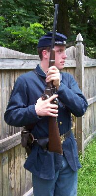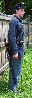 New York trooper on sentry duty in 1864 standing at the position of Carry Arms just as prescribed in Poinsett's