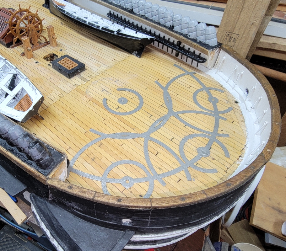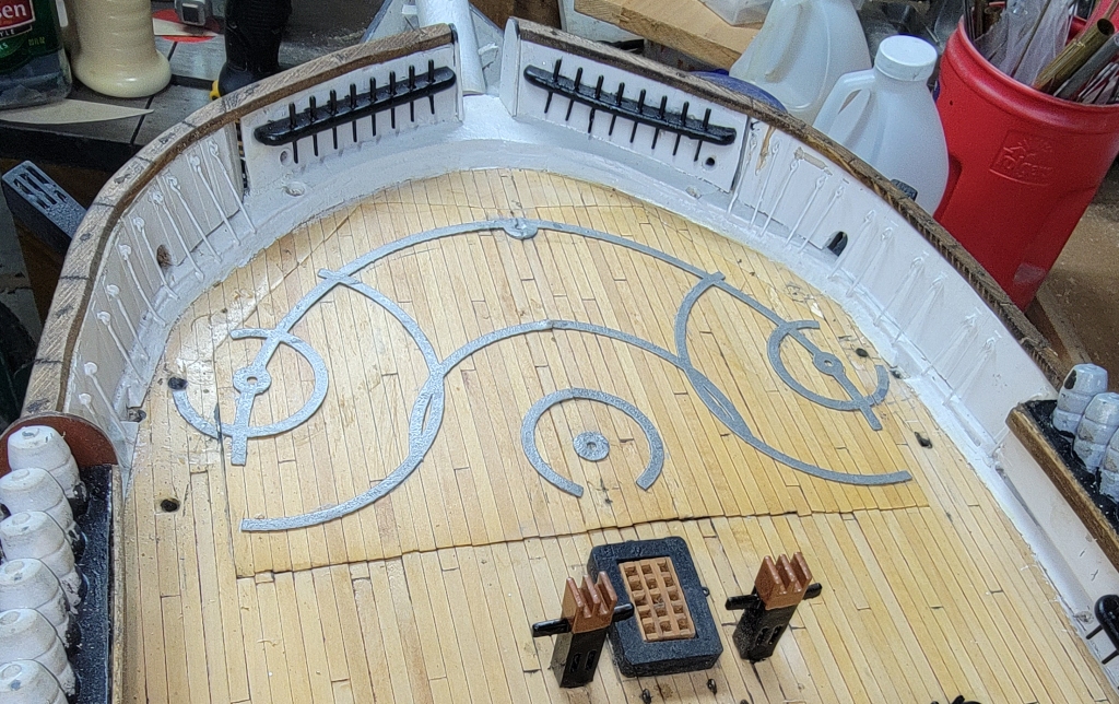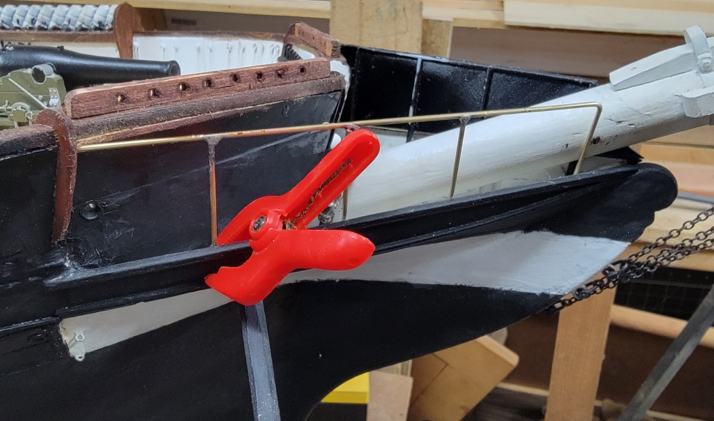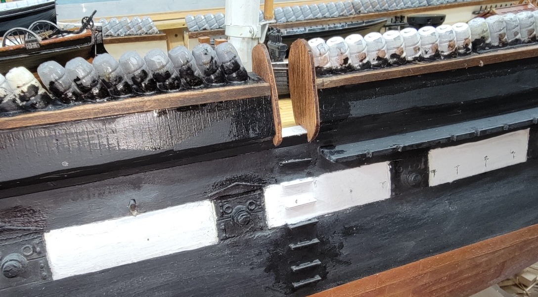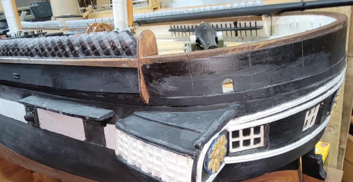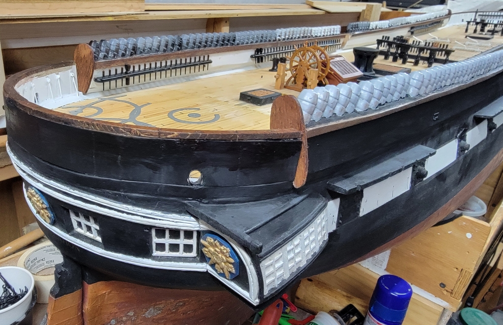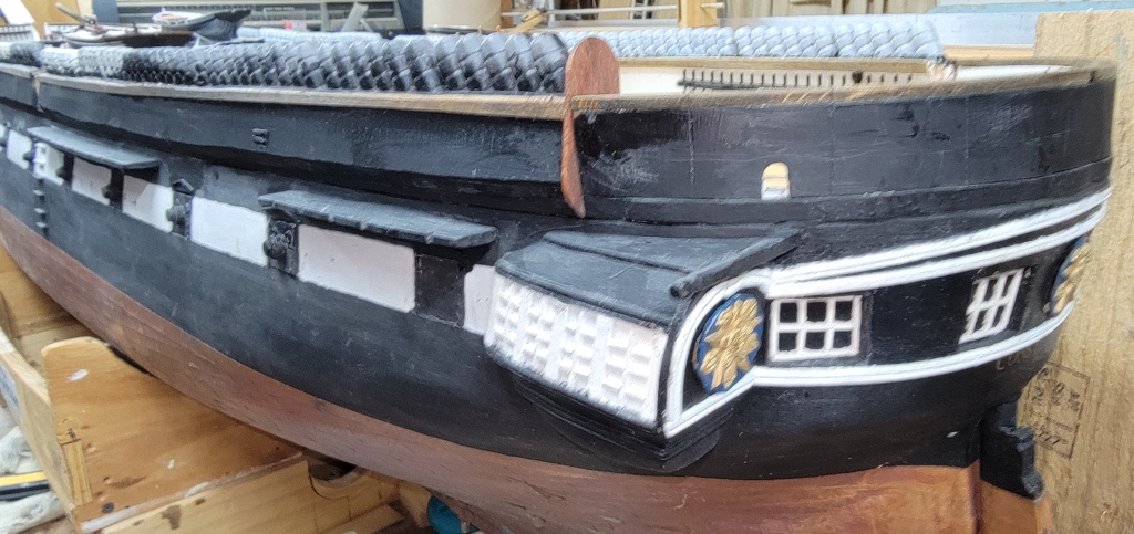 The end-boards that cap the ends of the bulwarks and entry-port were made from 1/16" sheet basswood. They were made to give the model a little bit of finish when put on display. The entry-port boards were carved which I intend to 3D model and print to get all the details.