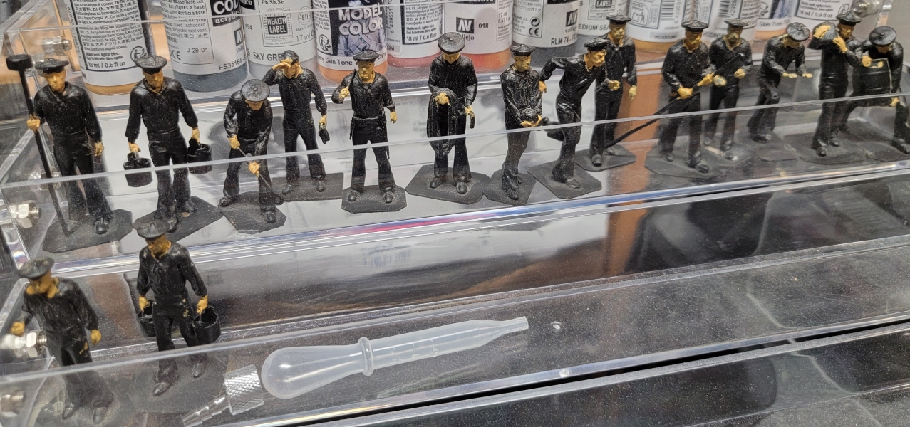 21st-22nd: For a change-of-pace, I decided to paint the 3D printed crew figure I had. I didn't have any white, black, or blue, so I didn't get far. I did have half-a-dozen or so skin-tones, so I just painted hands and faces.