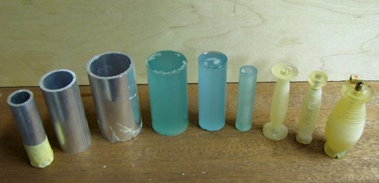 The cylinders are molded in epoxy using 3 sizes of aluminium tubes to get the general diameters needed.