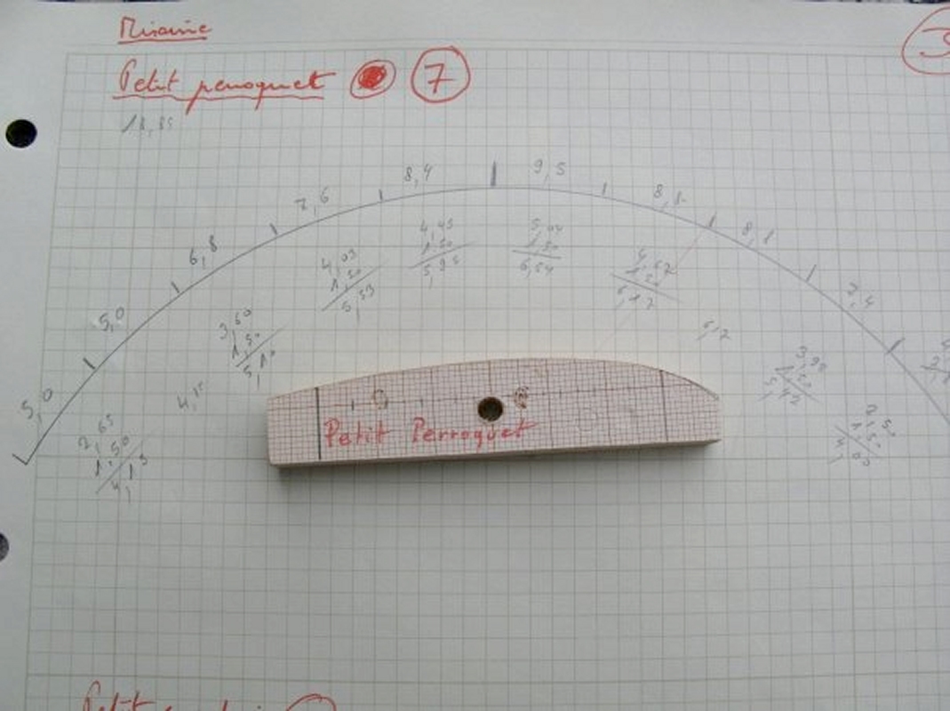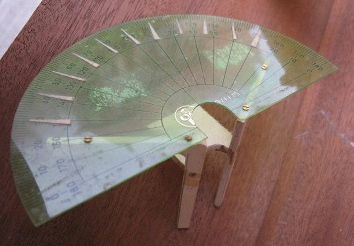 A protractor jig is used at each yard to measure the brace length every 12 degrees to 60 degrees port and starboard.