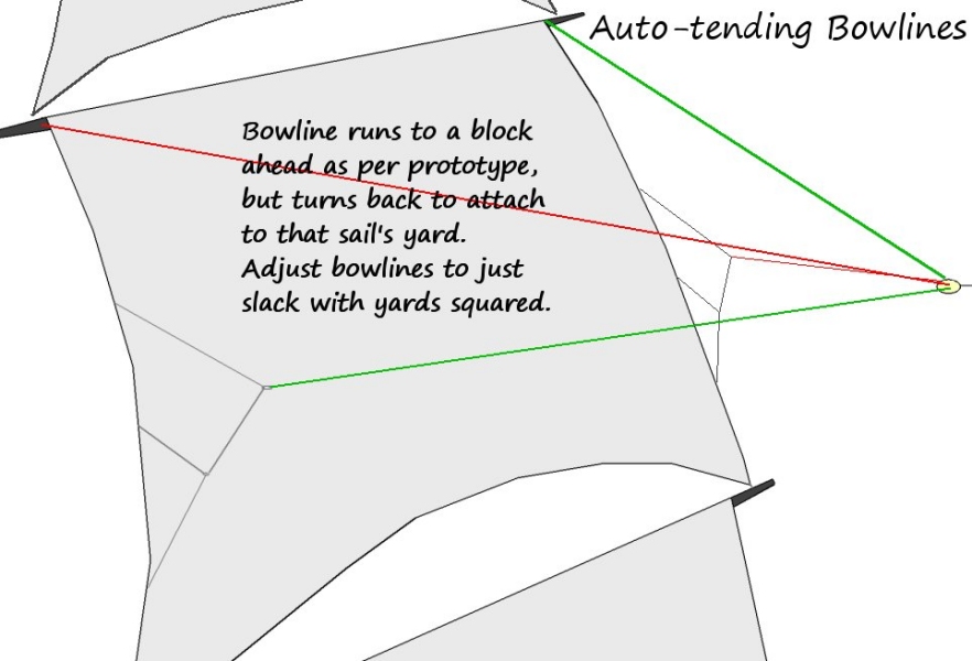 is this system makes it easier to handle tacks/sheets on the courses (the square sails with no yard below them).