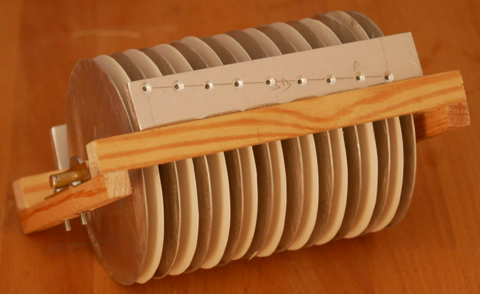 There's a two drums for each mast, one for it's port brace, the other for the starboard brace. As explained on the previous page, each drum is sized to pull or pay out the requisite length in the number of rotations the drum will make.