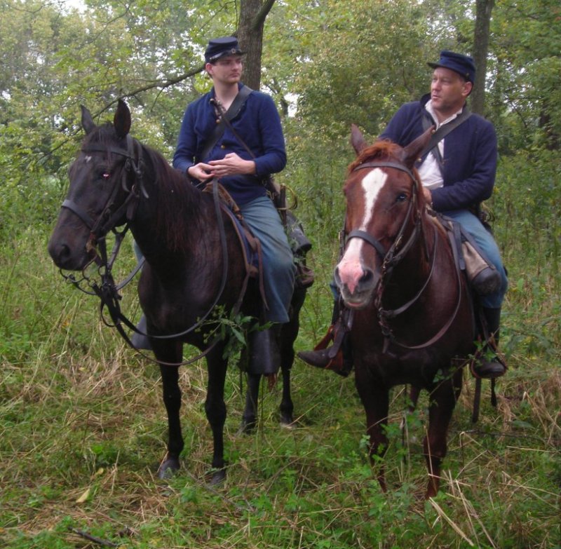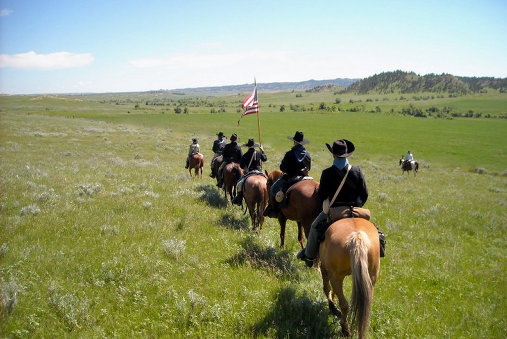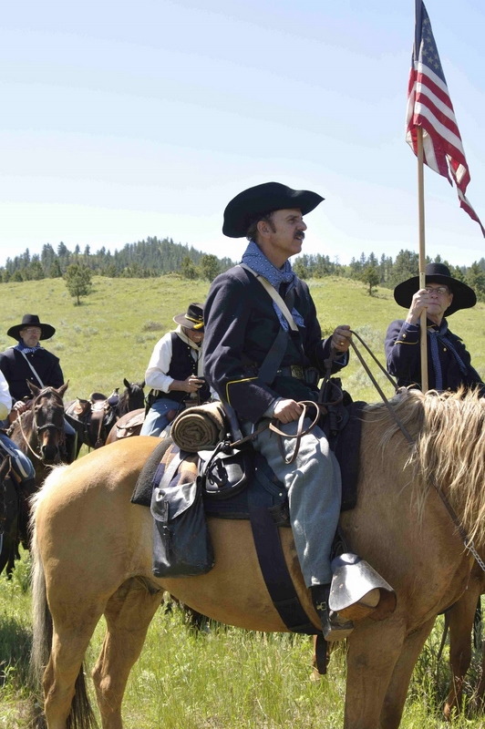 Joey B and Andy G (with guideon) ride to the Little Big Horn.