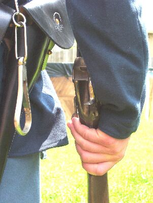 against the body without being constrained; seize the carbine with the left hand, the little finger touching the upper