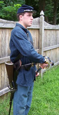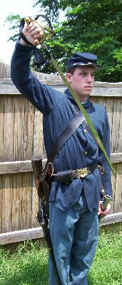 New York trooper on sentry duty in 1864 standing at the position of Carry Arms just as prescribed in Poinsett's